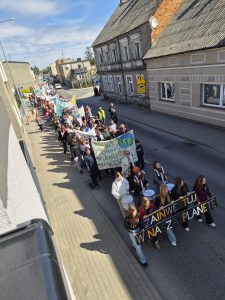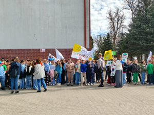 Przedpołudnie 22 kwietnia 2026r. wypełniło ulice naszego miasta niezwykłą energią. Uczniowie naszej szkoły postanowili zamanifestować swoją troskę o losy naszej planety biorąc udział w przemarszu z okazji Dnia Ziemi. O godzinie 10:00 pod eskortą policji, straży miejskiej i ratownictwa medycznego społeczność szkolna w barwnym korowodzie ruszyła do centrum Mroczy. W trakcie marszu uczniowie "zerówki" prezentowali własnoręcznie wykonane chorągiewki w kształcie drzew, młodsze klasy sygnalizowały swoją obecność grzechotkami. Wszyscy skandowali hasła związane z ochroną Ziemi. Pochód prowadziły uczennice z Samorządu Uczniowskiego niosąc motto przewodnie "Zainwestuj w naszą planetę", a za nimi podążała szkolna sekcja werblistów nadając tempo maszerującym. Nad głowami uczestników powiewały transparenty z hasłami, takimi jak: