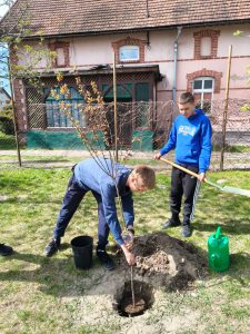 Finalnie po powrocie i krótkim przemówieniu pani dyrektor uczniowie klas ósmych w wyznaczonym na terenie boiska miejscu posadzili pamiątkowe drzewko, które ma przypominać o dzisiejszej inicjatywie. Tegoroczny Dzień Ziemi w naszej szkole nie był tylko symboliczną datą w kalendarzu. Przemarsz pokazał jedność naszej społeczności i determinację w dążeniu do zmian. Dziękujemy wszystkim uczniom i nauczycielom za zaangażowanie i przygotowanie oprawy tego wyjątkowego wydarzenia. Szczególne podziękowania kierujemy policjantom z Komisariatu Policji w Mroczy, panom ze Straży Miejskiej w Mroczy, panu Damianowi Dębeckiemu z Auxilium Ratownictwo Medyczne oraz panu Jackowi Pawłowi Lewandowskiemu z Agencji Ochrony Osób i Mienia JAG w Bydgoszczy. Dzięki Wam czuliśmy się bezpiecznie.