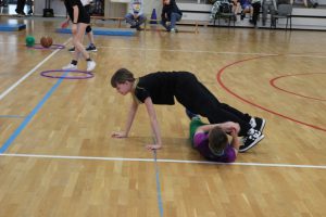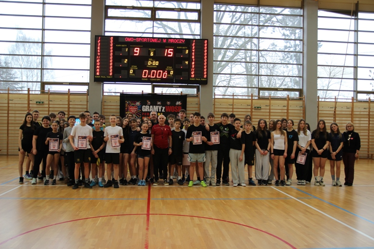 Rywalizacja w hali sportowo-widowiskowej zaczęła się od zmagań grupy przedszkolnej i uczniów klas 1 – 3, którzy rozegrali turniej zbijaka. Klasy 4 – 6 rywalizowały w turnieju rzędów, a najstarsi uczniowie rozegrali mecz koszykówki bez kozłowania.