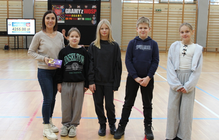 Nowością tegorocznej akcji była licytacja zajęć z naszym szkolnym psim terapeutą Bilim. Licytacja wywołała dużo emocji i zakończyła się zwycięstwem klasy 8c, z którą dzielnie rywalizowała klasa 4a. Czwartoklasiści, mimo że przegrali, i tak przekazali zebrane pieniądze na konto WOŚP – za co szczególnie dziękujemy!