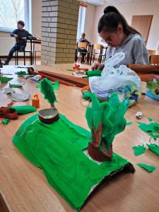 Pod przewodnim hasłem „Zainwestuj w naszą planetę” obchodzony jest tegoroczny Światowy Dzień Ziemi. Dzień Ziemi okazał się doskonałą okazją do przeprowadzenia warsztatów plastycznych dla uczniów klas 1-3 w świetlicy szkolnej. Zajęcia miały na celu m.in. przybliżenie tematyki ochrony zasobów naturalnych i zwiększenia świadomości ekologicznej. Uczniowie pod okiem opiekuna Aliny Gordon wykonały prace pn. Leśna polana. Na fragmentach kory różnych gatunków drzew , dzieci przyklejały materiały papierowe pochodzące z recyklingu , tak żeby przypominały formy drzew i roślin. Zajęcia były okazją do rozmów o naturze i ingerencji w nią człowieka, a wszystko po to, aby wspólnie dbać o dobro naszej planety.