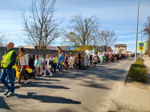 Finalnie po powrocie i krótkim przemówieniu pani dyrektor uczniowie klas ósmych w wyznaczonym na terenie boiska miejscu posadzili pamiątkowe drzewko, które ma przypominać o dzisiejszej inicjatywie. Tegoroczny Dzień Ziemi w naszej szkole nie był tylko symboliczną datą w kalendarzu. Przemarsz pokazał jedność naszej społeczności i determinację w dążeniu do zmian. Dziękujemy wszystkim uczniom i nauczycielom za zaangażowanie i przygotowanie oprawy tego wyjątkowego wydarzenia. Szczególne podziękowania kierujemy policjantom z Komisariatu Policji w Mroczy, panom ze Straży Miejskiej w Mroczy, panu Damianowi Dębeckiemu z Auxilium Ratownictwo Medyczne oraz panu Jackowi Pawłowi Lewandowskiemu z Agencji Ochrony Osób i Mienia JAG w Bydgoszczy. Dzięki Wam czuliśmy się bezpiecznie.