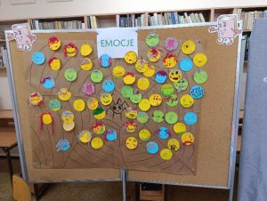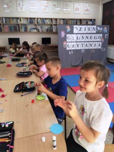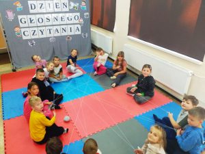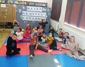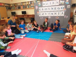 Dnia 29 września w bibliotece szkolnej uczniowie klasy I a, I b, I c, I d uczestniczyli w Ogólnopolskim Dniu Głośnego Czytania. Celem święta było propagowanie czytelnictwa wśród dzieci, promowanie głośnego czytania, nabywanie przyjemności z czytania i słuchania. Uczniowie wysłuchali tekstu pt:.”Bajka o pajączku” Marii Molickej. Mottem przewodnim historii było ukształtowanie u dzieci postawy akceptacji innych osób, empatii, budowanie poczucia własnej wartości oraz wyrażenie swoich emocji. Dzieci po wysłuchaniu bajki uczestniczyły w zabawie muzyczno-ruchowej Batii Strauss „Idzie pająk”, tworzyły emotkę, na której za pomocą rysunku wyraziły swoje emocje. Największą frajdę sprawiło dzieciom stworzenie pajęczej sieci z włóczki. Zadanie to wymagało koncentracji całej klasy i samodyscypliny.