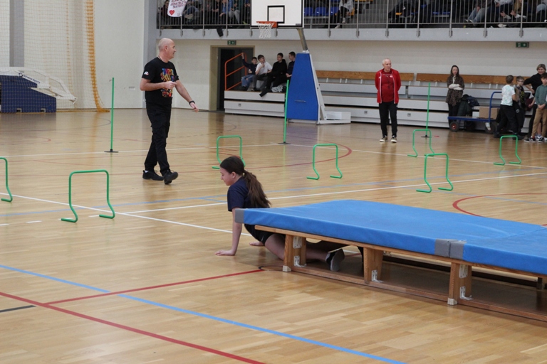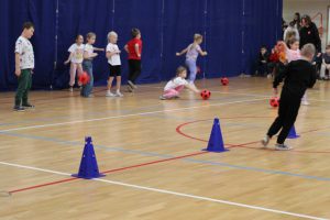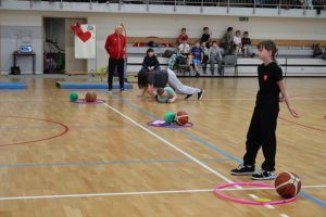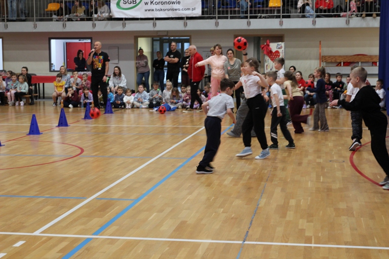 Rywalizacja w hali sportowo-widowiskowej zaczęła się od zmagań grupy przedszkolnej i uczniów klas 1 – 3, którzy rozegrali turniej zbijaka. Klasy 4 – 6 rywalizowały w turnieju rzędów, a najstarsi uczniowie rozegrali mecz koszykówki bez kozłowania.