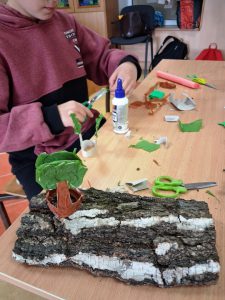 Pod przewodnim hasłem „Zainwestuj w naszą planetę” obchodzony jest tegoroczny Światowy Dzień Ziemi. Dzień Ziemi okazał się doskonałą okazją do przeprowadzenia warsztatów plastycznych dla uczniów klas 1-3 w świetlicy szkolnej. Zajęcia miały na celu m.in. przybliżenie tematyki ochrony zasobów naturalnych i zwiększenia świadomości ekologicznej. Uczniowie pod okiem opiekuna Aliny Gordon wykonały prace pn. Leśna polana. Na fragmentach kory różnych gatunków drzew , dzieci przyklejały materiały papierowe pochodzące z recyklingu , tak żeby przypominały formy drzew i roślin. Zajęcia były okazją do rozmów o naturze i ingerencji w nią człowieka, a wszystko po to, aby wspólnie dbać o dobro naszej planety.